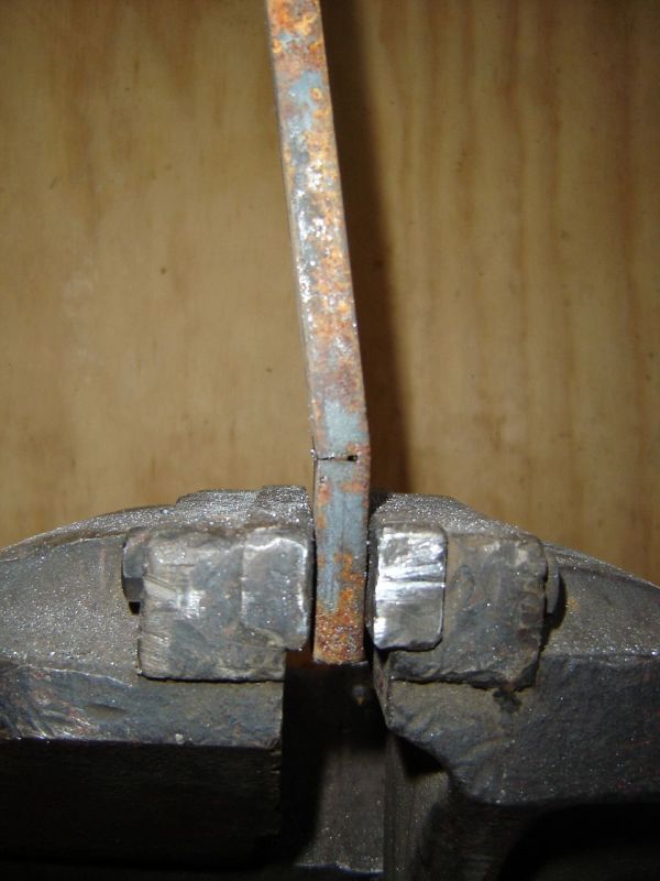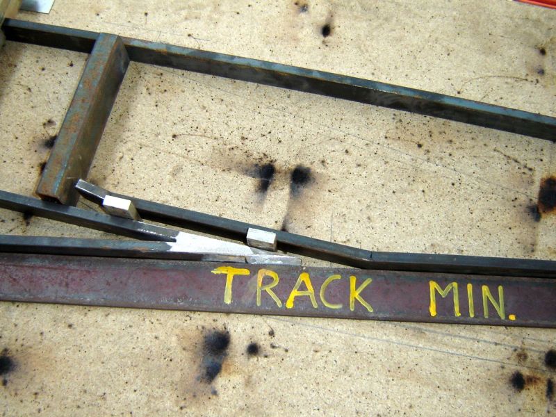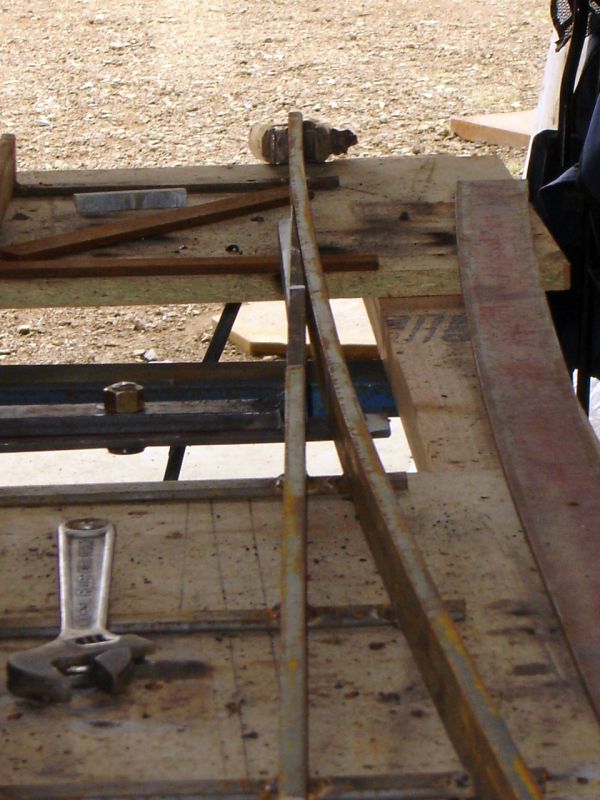 When happy with the alignment you can weld the blade to the pivot. Follow the same procedure with the curved blade except bend the blade on the chalk line to match your radius gauge rather than the straight edge.
