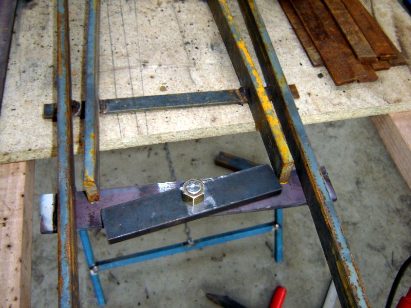 The next step is to make and fit the pivot for the point blades. I have used 40mm x 5mm flat for the bottom plate and 32mm x 10mm for the top pivoting section with a 12mm blot welded through the bottom plate. Do the bolt up finger tight and then back it off just far enough to allow the top piece to pivot freely. Fit a lock nut, or peen the bolt over to prevent it coming loose.